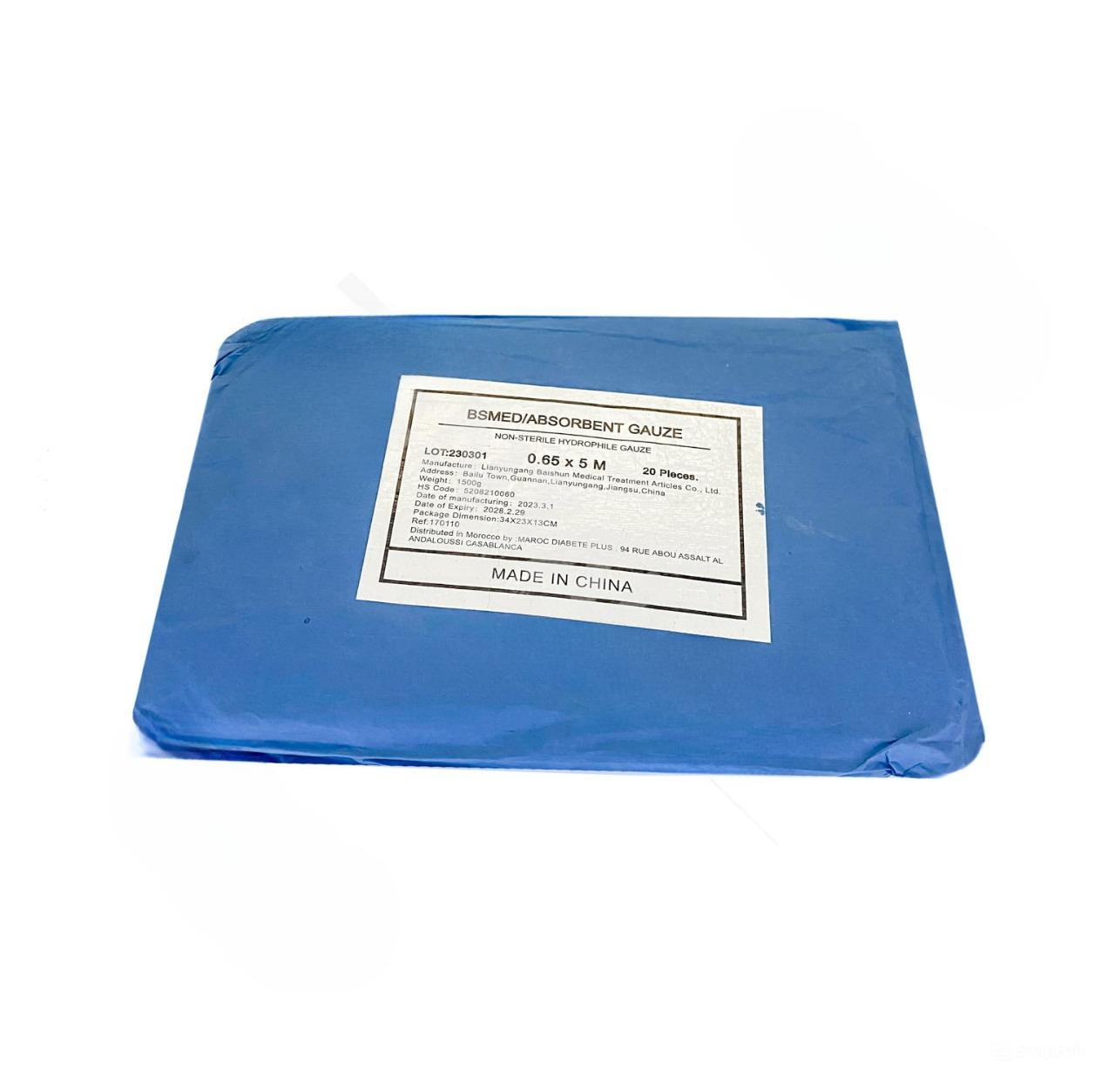 Gaze de coton à mailles larges utilisée pour les pansements chirurgicaux, les tamponnades gingivales et la confection de bandes de retenue de caillot lors des chirurgies pré-implantaires.