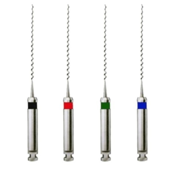 Spirale de Lentulo pour la mise en place des ciments de scellement canalaire dans le canal radiculaire. Application centrifuge par rotation dans un contre-angle, assurant une répartition homogène du ciment.